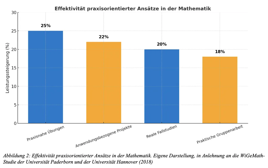 Die WiGeMath-Studie (2018), mit etwa 4.000 teilnehmenden Studierenden von verschiedenen deutschen Hochschulen, bestätigt, dass praxisorientierte Ansätze die mathematischen Leistungen um bis zu 25% steigern!
