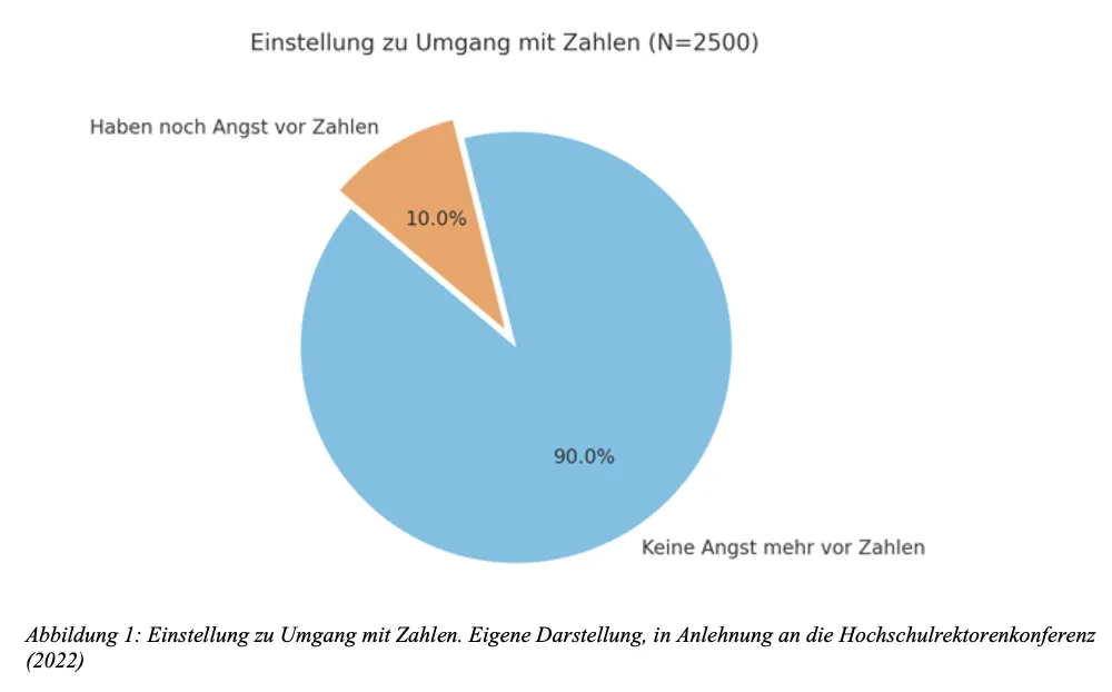 Eine Studie der Hochschulrektorenkonferenz (2022) mit 2.500 Teilnehmenden aus 15 Fachbereichen zeigt: 9 von 10 Absolvent:innen mit Matheanteilen in ihrem Studium berichten, dass sie nach dem Abschluss keine Angst mehr vor Zahlen haben und sicher im Umgang mit ihnen sind.